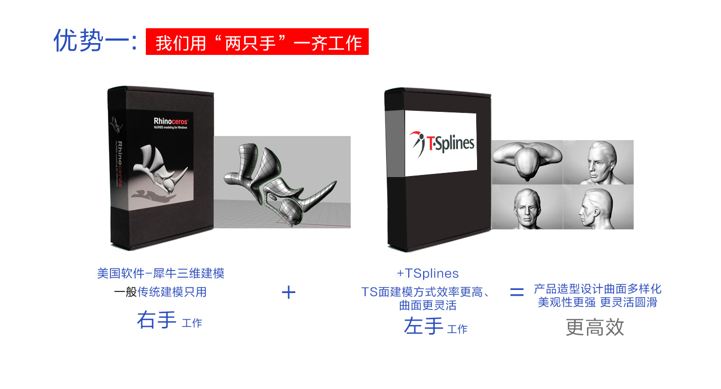 1.产品外观建模:Rhinoceros建模 TSplines建模 2.结构设计:PRO/E SOLIDWORKS建模